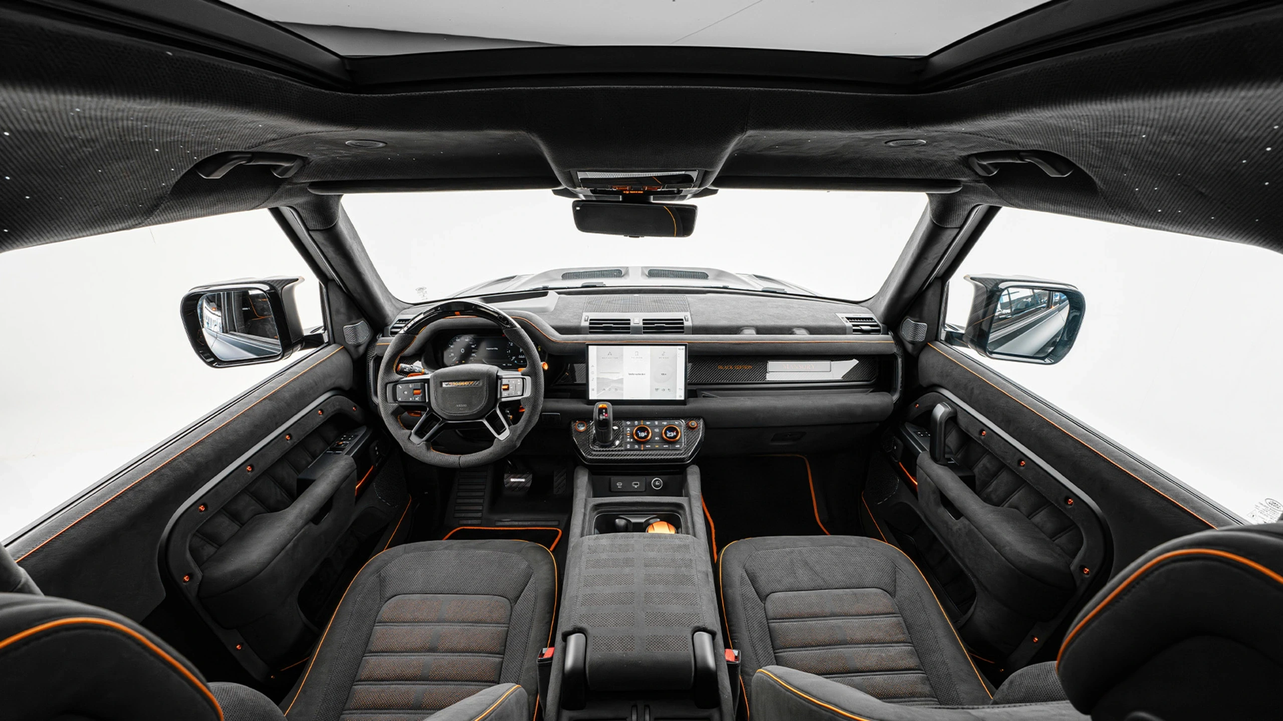 • LED starlight headliner featuring hundreds of LEDs forming the Mansory logo adds a unique ambient touch.