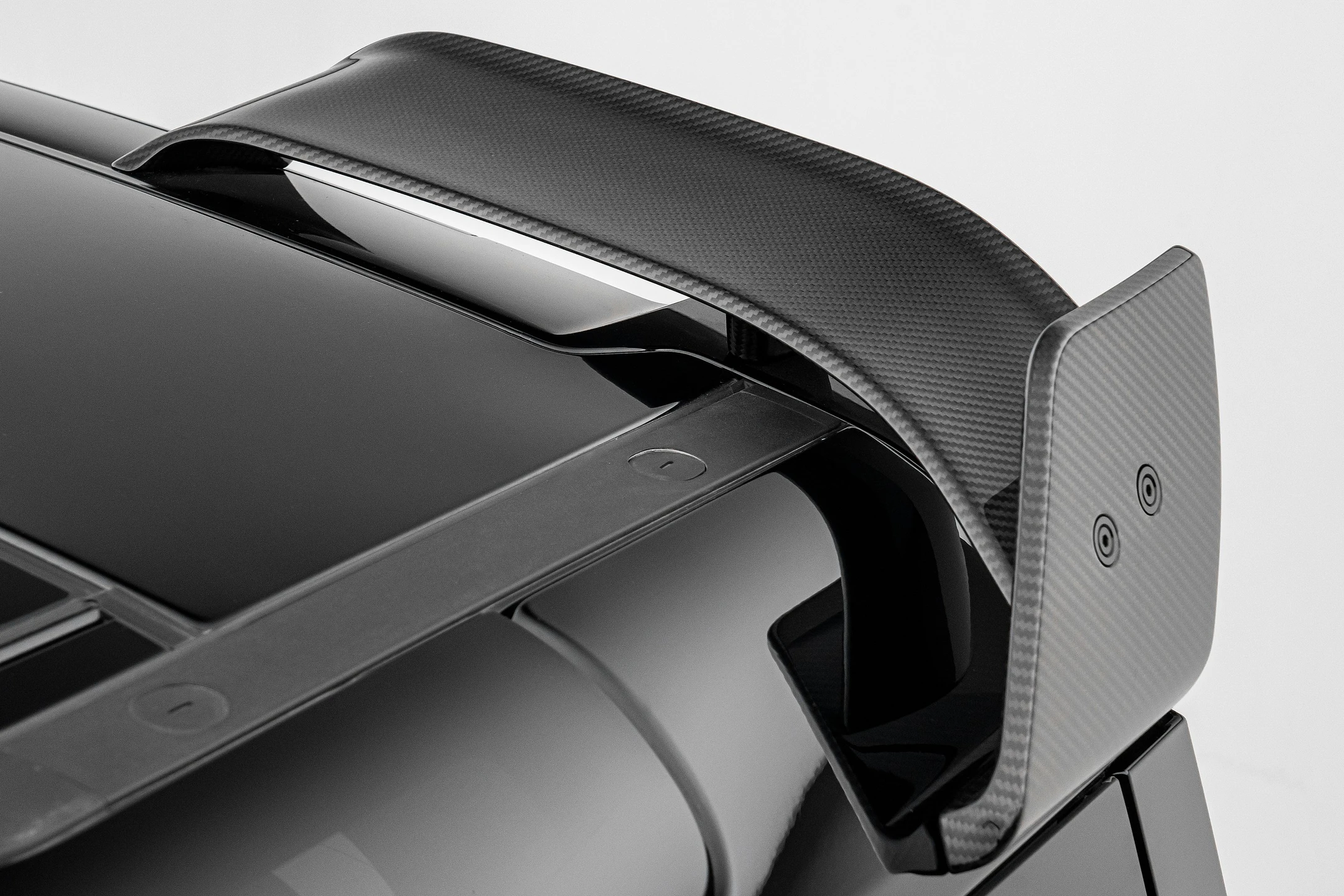 • Full visible carbon fiber kit—including front bumper, exposed-structure hood with air vents, over-fender arches (front & rear), door extensions, roof spoiler, and rear diffuser—all elegantly flowing with OEM lines.