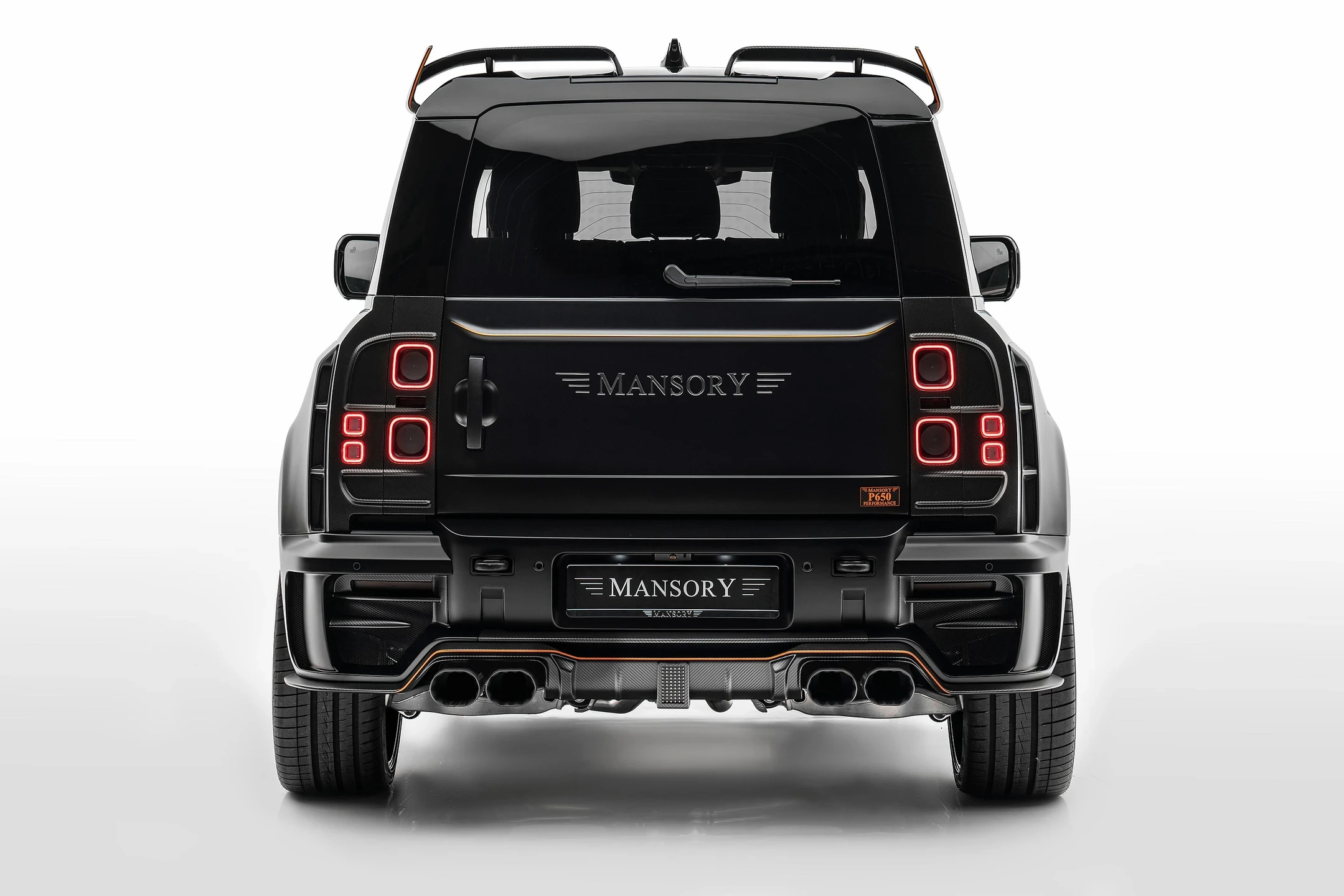 • Illuminated spare-wheel cover emblazoned with the Mansory logo, offering standout utility and rear-end appeal.